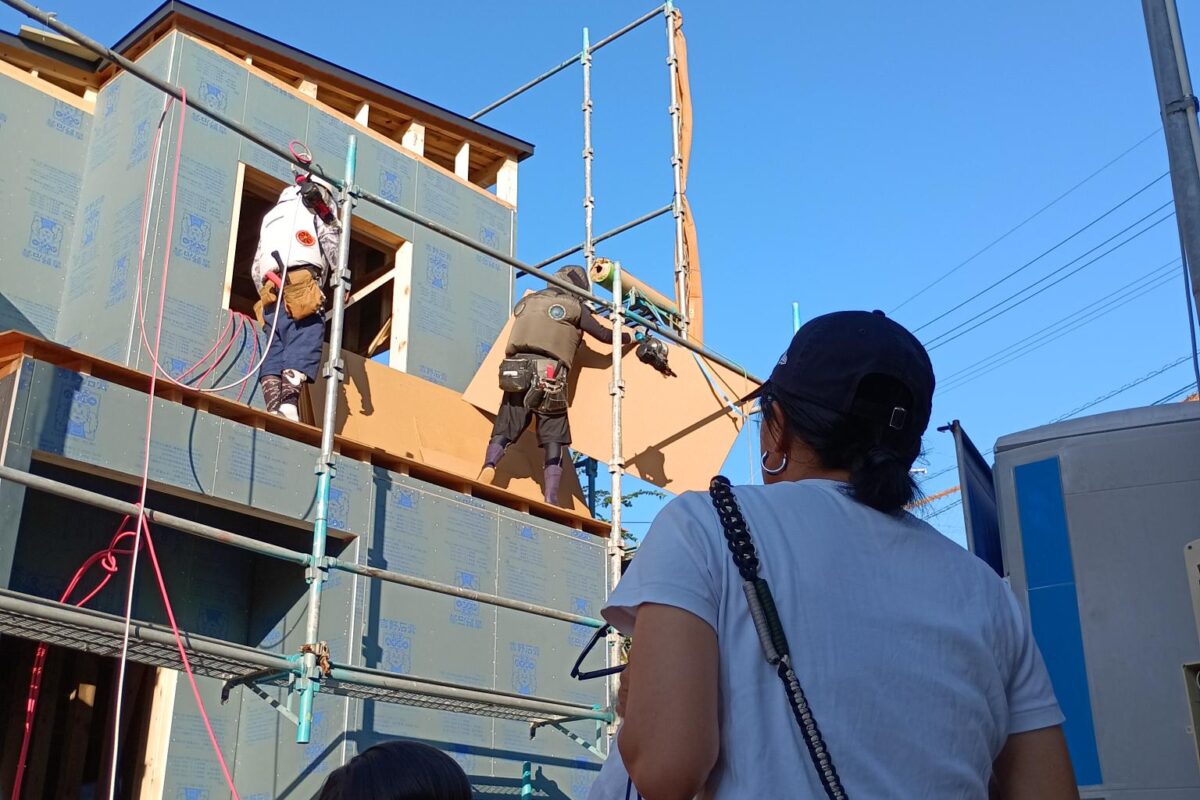 石井エリアで上棟がありました。 今回は進入路が一方しかなく、三方からの施工・出入りが困難な立地の上棟でした。 最近は分譲地での上...