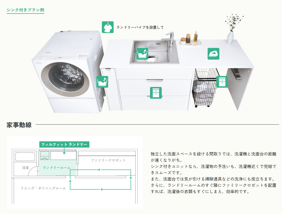 上の画像のセットプランは乾燥機収納付きのセットプランです。