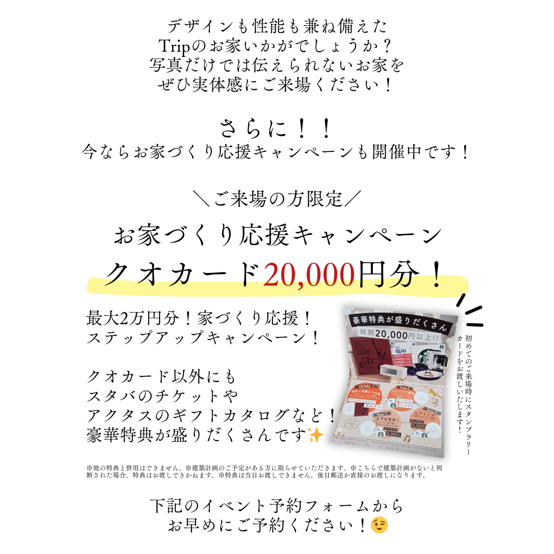 | 備考 | WEBからの事前来場予約でQuoカード20,000円分プレゼント! |