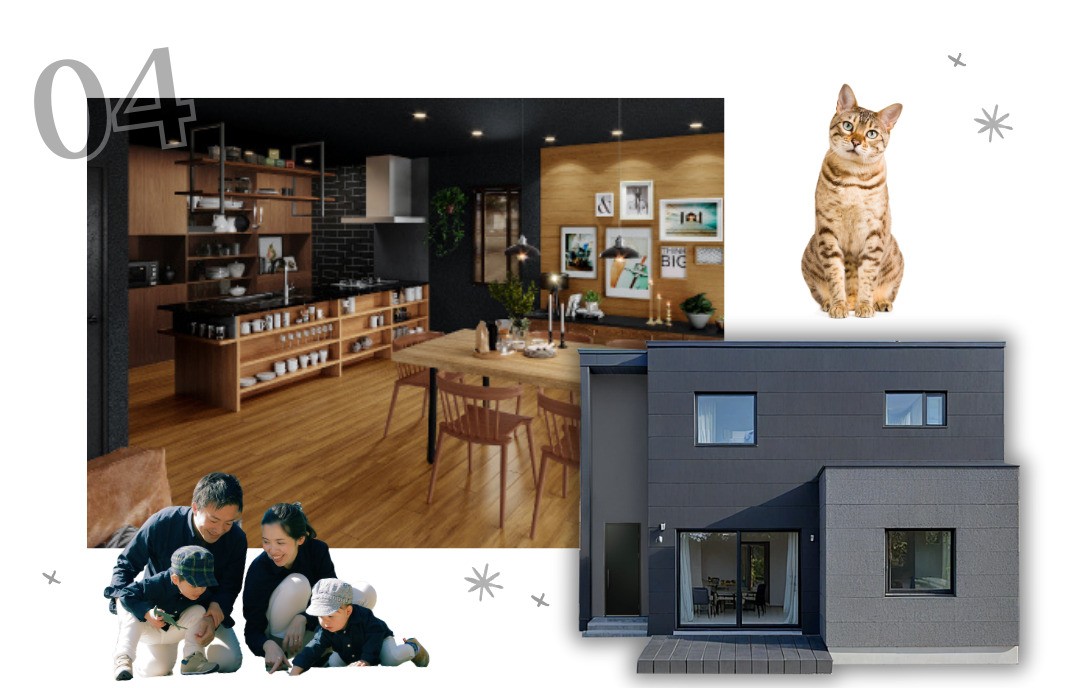 04 ブラック・グレーで統一したモノトーンデザインが魅力の住まい。