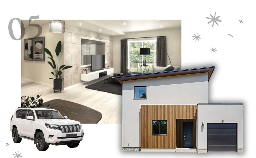 05 木目×ダークグレーのガレージが存在感を放つ、こだわりの住まい。